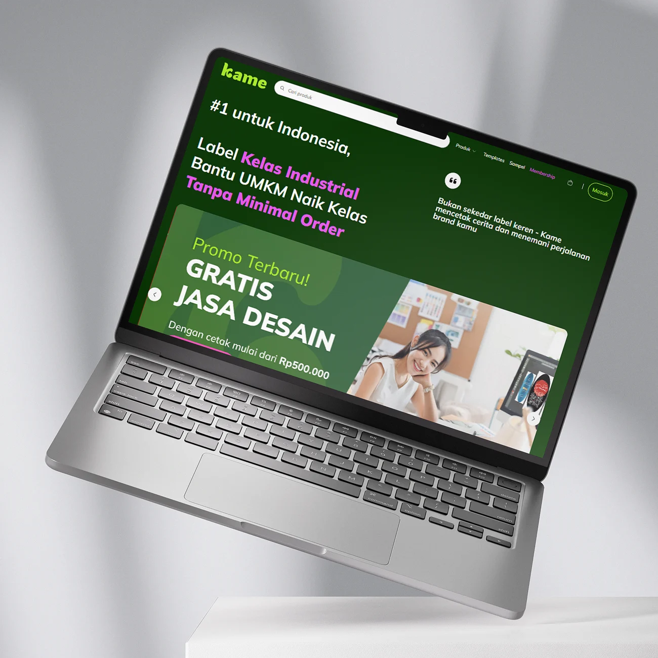 Kame partnered with Playworks to build a fully integrated B2B e-commerce platform for industrial label printing in Indonesia—designed with no minimum order, instant customization, and seamless order-to-fulfillment automation. Playworks developed the platform end-to-end, including product catalog systems, custom design tools, payment integrations, logistics workflows, and real-time analytics infrastructure.